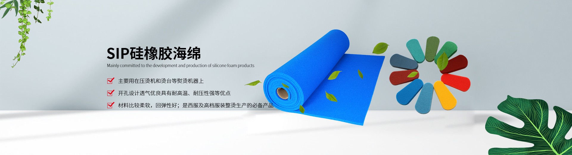 ????我公司生產(chǎn)的硅膠海綿具有耐高溫、耐壓、透氣性能好、抗撕拉、使用壽命長(zhǎng)、環(huán)保等特點(diǎn),主要適用于服裝干洗、水洗熨燙設(shè)備,如壓燙機(jī)和燙臺(tái)等。另外我們也提供各種燙氈、罩布等整燙專(zhuān)用墊料,客戶可根據(jù)不同熨燙工藝選擇不同的搭配組合,滿足高品質(zhì)的熨燙要求。